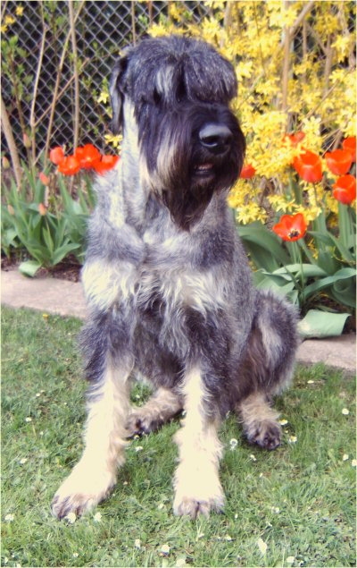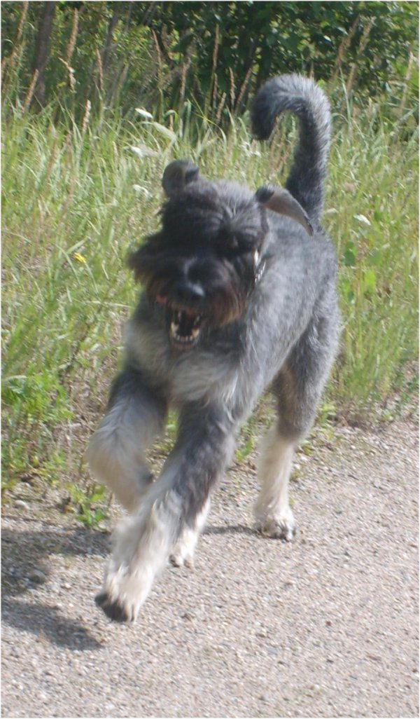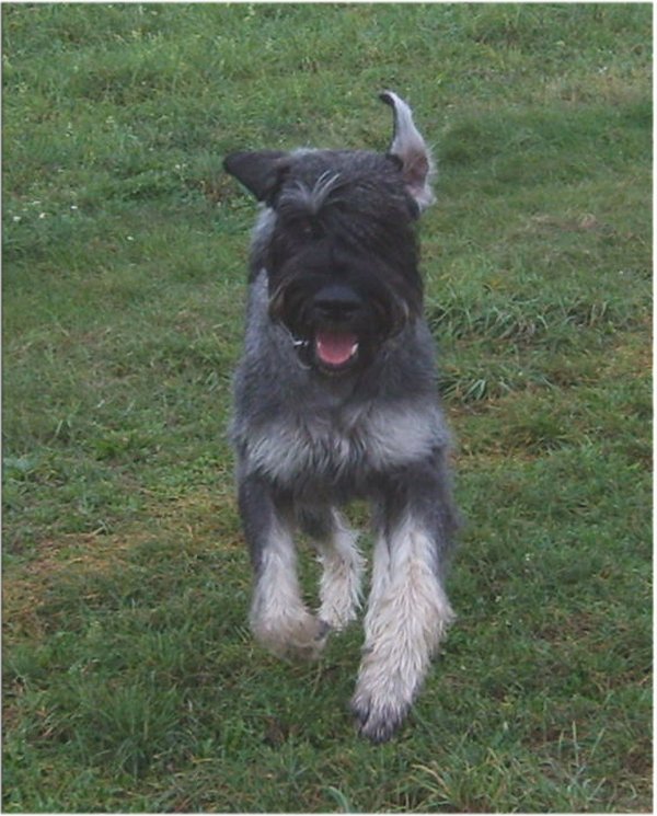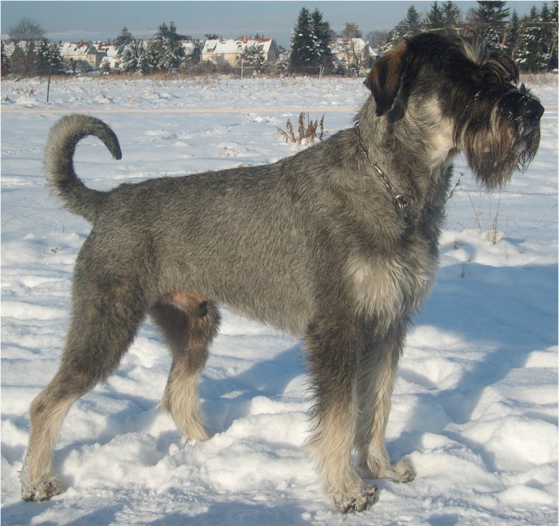 Zusammenfassung Richterberichte: Gero ist ein großer, substanzvoller Rüde mit prima Ober- und Unterlinie. Der Kopf ist gestreckt und zum Körper passend. Korrekte Hinterhand, die Vorderhand ist etwas steil. Das Auge ist braun, könnte aber dunkler sein. Das Haar ist sehr hart und von mittleren Pfeffersalz. Der Rücken ist fest und er hat ein raumgreifendes Gangwerk. Pfotenstand vorn etwas französisch. Einwandfreies, temperamentvolles Wesen. | ||||||||||||||||||||||||||||||||||||||||||||||||||||||||||||||||||||||||||||||||||||||